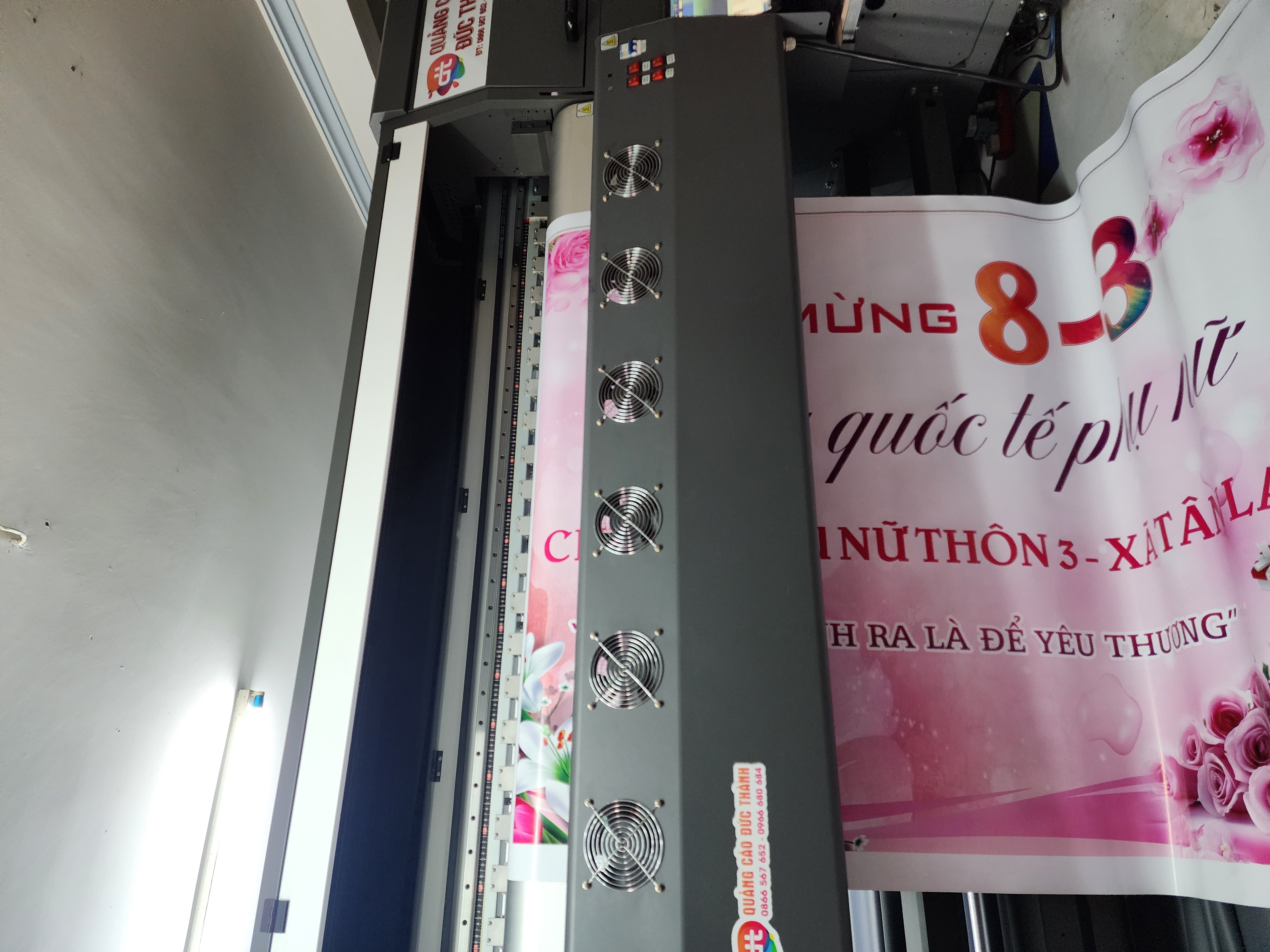 2.In UV: Sử dụng máy in UV, công nghệ này sử dụng ánh sáng UV để khô hoặc đóng rắn mực in ngay khi nó được áp dụng lên bề mặt. Điều này tạo ra hình ảnh sắc nét và chất lượng cao mà không làm mờ hay làm thay đổi cấu trúc bề mặt của bạt.